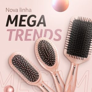 A linha Megatrends apresenta escovas ideias para o uso diário aliadas à qualidade profissional de produtos. Com design moderno, os itens estão disponíveis na cor rosê perolado e em sete modelos diferentes.