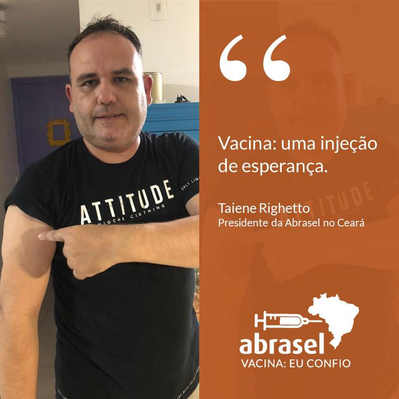 No Ceará, o presidente da entidade, Taiene Righetto, o conselheiro Rodolphe Trindade e associados já aderiram à iniciativa, postando fotos nos seus perfis, em apoio à vacinação. “Recebemos com muita esperança a chegada da vacina e decidimos iniciar esta campanha para incentivar as pessoas a se vacinarem, por ser um ato de cidadania e para que possamos em breve voltar a uma vida normal. A vacina é o principal caminho para uma solução definitiva dessa pandemia”, diz Righetto.