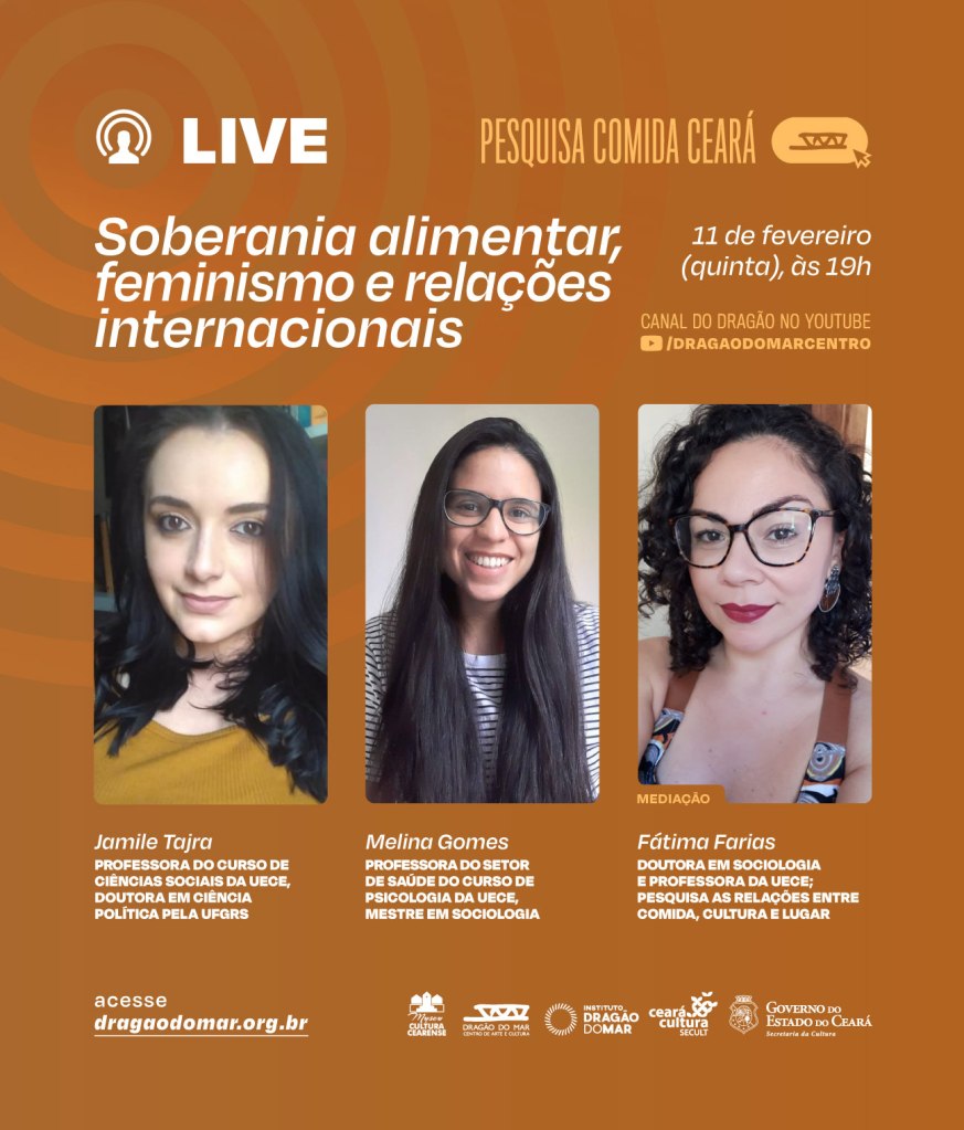 Serviço: LIVE Soberania alimentar, feminismo e relações internacionais, com Jamile Tajra, Melina Gomes e Fátima Farias
