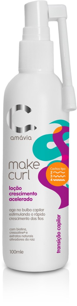 O produto foi formulado para agir direto no bulbo capilar, estimulando o crescimento dos fios com a ação de substratos como a biotina, alecrim, Cressantini e um blend de extratos botânicos. A Loção de Crescimento Acelerado Make Curl complementa a linha de cuidados que é o carro chefe da Amávia. A linha Make Curl conta com produtos para a rotina de cuidados contemplando as diversas curvaturas de cacheados e crespos entre 3 e 4.