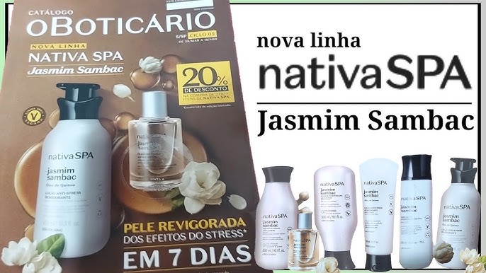 | Nativa SPA Jasmim Sambac Body Splash, 200ml Preço Sugerido: R$ 63,90 · Perfumação ao longo do dia; · Fragrância única da linha: · Fórmula vegana; · Ideal para todo o corpo; · 95% de ingredientes naturais. | ||