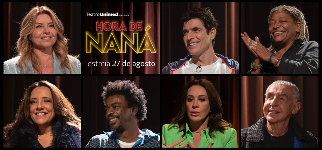 Imagine uma série de conversas com alguns dos ídolos da música, do teatro e da televisão, recheadas com muito alto astral, perguntas inusitadas e revelações surpreendentes. Assim é o programa Hora de Naná, comandado por Naná Karabachian, que reúne um time de estrelas formado por Ana Carolina, Reynaldo Gianecchini, Mart’nália, Seu Jorge, Elias Andreato e Claudia Raia. Com direção de Monique Gardenberg e Guilherme Leme Garcia e realização da Dueto Produções, o programa, o primeiro de uma série dedicada a conversas produzidas pelo Teatro Unimed, poderá ser visto com acesso gratuito a partir da sexta-feira, 27 de agosto, às 21h, no site http://www.teatrounimed.com.br.