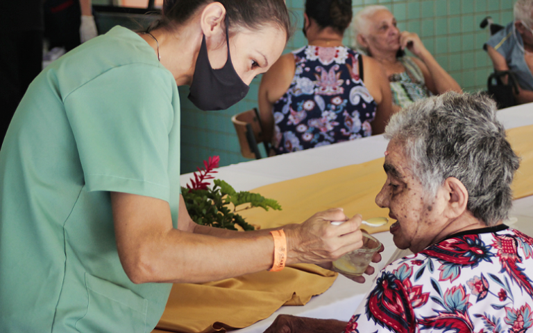 Durante a ação, o paciente tem uma refeição saudável e com valor sentimental, com assistência da equipe de saúde e de cuidadores. “Queremos proporcionar um momento de prazer ao paciente, ao mesmo tempo em que não descuidamos de sua segurança no momento da deglutição dos alimentos e atendendo às necessidades nutricionais de cada um”, acrescenta Ismael de Paula, também nutricionista.