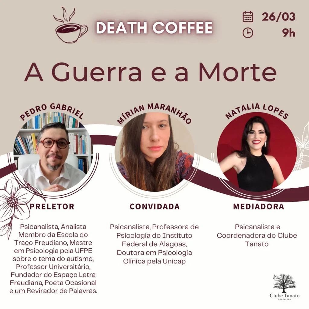 O Memorial Funeral Home realiza no próximo dia de 26 de março o primeiro “Death Coffee” de 2022, que tem como tema “A Guerra e a Morte”. As inscrições são gratuitas e podem ser feitas pelo link no Instagram do @clubetanato.