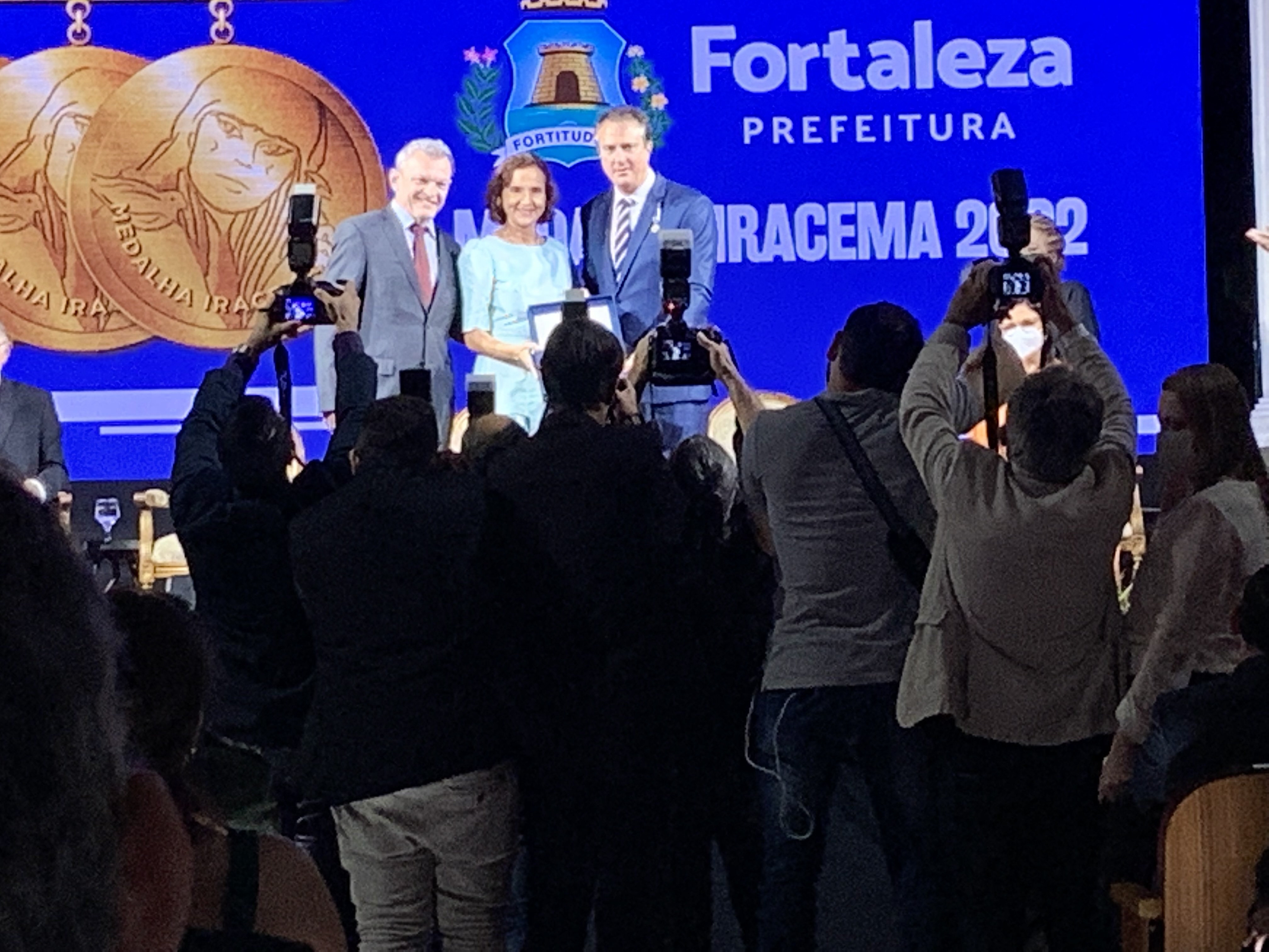 A edição 2022 da Medalha Iracema foi realizada na noite em que Fortaleza celebrou os 296 anos de fundação, na última quarta-feira (13/04), no Teatro São José. A maior honraria do Poder Executivo Municipal foi entregue pelo prefeito José Sarto aos agraciados: o ex-governador Camilo Santana, o Instituto da Primeira Infância (Iprede) e os servidores da saúde, representados pela titular da Secretaria Municipal da Saúde (SMS), Ana Estela Leite.