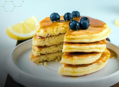 - Faça panquecas pequenas para servir em torre. Se quiser deixar a receita ainda mais saborosa, sirva com blueberries e mel. Bom apetite!