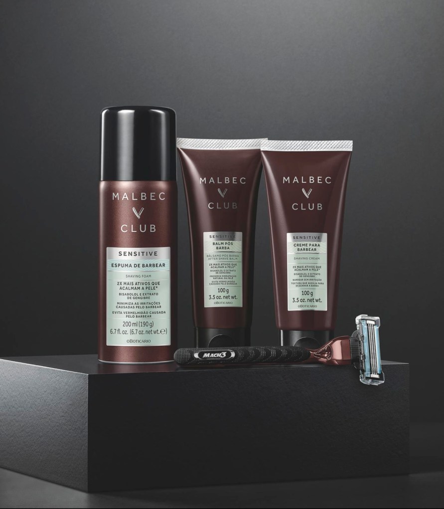 Pensada para os homens que estão cansados de fazer a barba e ficar com a pele do rosto vermelha, Malbec Club trouxe produtos que, além de terem benefícios funcionais, melhoram a experiência do momento do barbear. A Espuma Suave de Barbear Sensitive, o Creme para Barbear Sensitive e o Balm Pós Barba Sensitive contam com a combinação de extrato de gengibre e bisabolol, em uma quantidade duas vezes maior, para aliviar a superfície. O lançamento também marca a estreia do Boticário no território de lâminas, trazendo a Lâmina de Barbear Malbec Club.