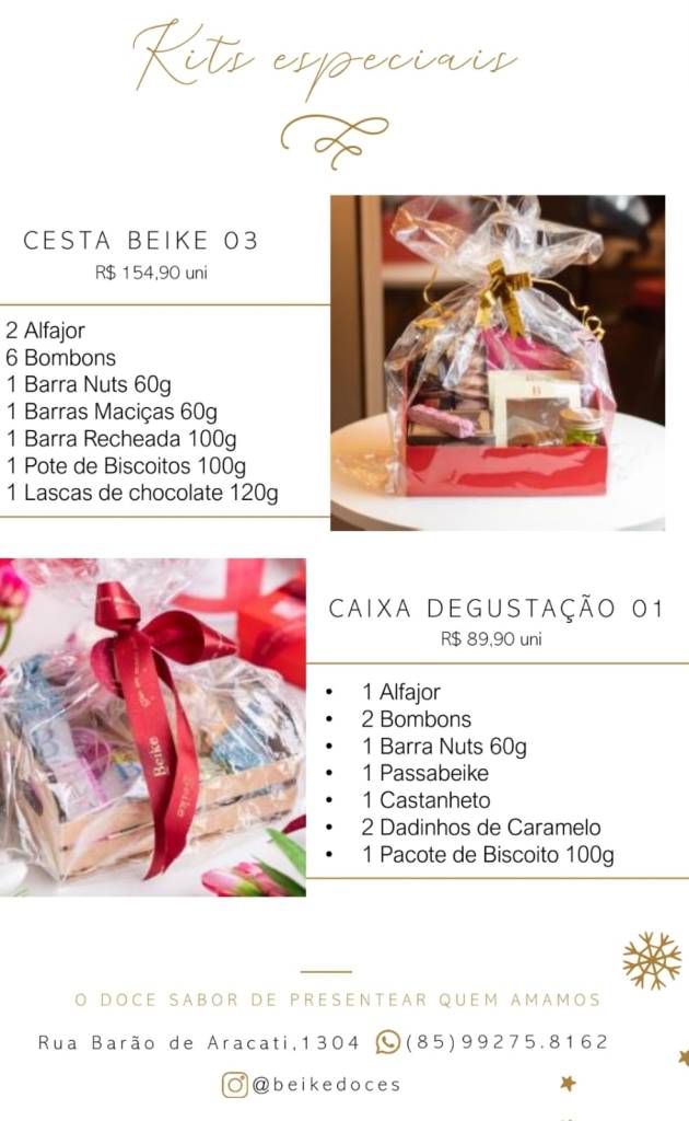 A Beike doces acaba de lançar seu catálogo de natal repleto de delícias! Todos os produtos da loja são pensados para oferecer aos clientes uma experiências gastronômica, que eles só teriam viajando pelo mundo. A Beike fica na Rua Barão de Aracati, 1304 na Aldeota. Corre lá e garanta os seus doces de Natal, que ainda dá tempo!