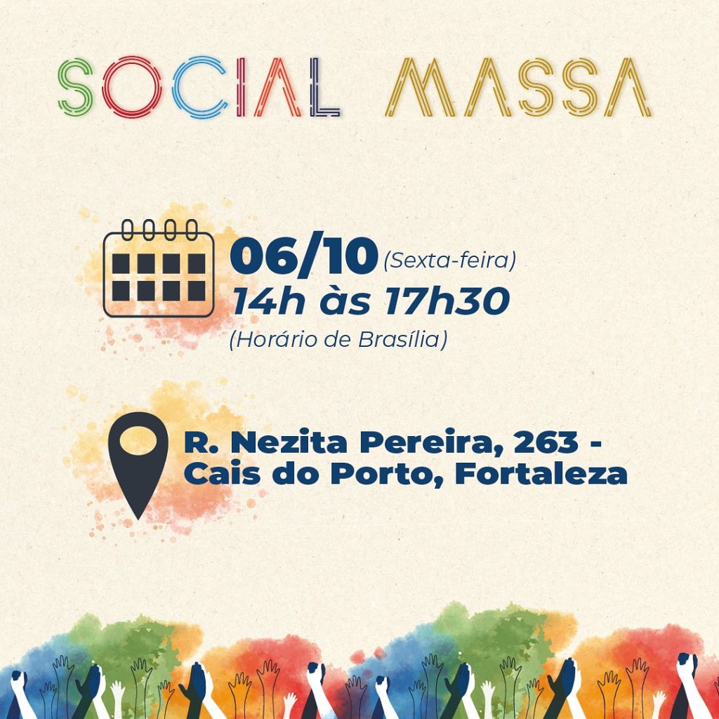 Com a colaboração para a sociedade enraizada em sua cultura, a M. Dias Branco promoverá na próxima sexta-feira, 6 de outubro, a partir das 14h, o Social Massa, evento que tem como propósito oferecer serviços essenciais, integrados e gratuitos para a região do Grande Mucuripe, nas áreas de cidadania, saúde, cultura e educação. Os serviços serão disponibilizados pelas instituições parceiras da M. Dias Branco, ampliando o impacto socioambiental positivo na comunidade.