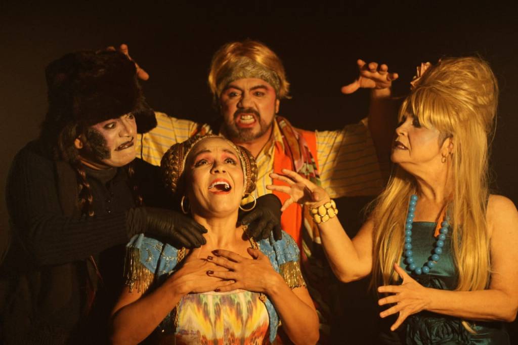 Não dá para negar, que a ganância e a maldade também são características que fazem parte da sociedade atual, principalmente quando o assunto são bens materiais. O ser humano pode chegar longe demais para conseguir o que deseja, até mesmo cometer um assassinato de um parente. E para relatar todos esses dramas que vivenciamos, o espetáculo “Rosa Escarlate da Trupe ‘Caba de Chegar” apresenta a história de dois irmãos: Anita e Alfredo e a governanta da casa, Fraulein Martha, que tramam o assassinato do avô para ficar com sua fortuna. Concluída a trama macabra de matar o próprio avô, os planos do trio parecem que estão ameaçados. Após o crime cometido, entra em cena o advogado Abdull, apresentando um testamento deixado pelo avô morto, no qual todos os bens irão para uma filha bastarda, que há muito tempo está desaparecida. Na pele de Cinderela da história, Maria Poliana ou Rosa Escarlate, a mocinha da novela, desvenda e desfaz todos os segredos, sem a menor desconfiança da família. O espetáculo traz inúmeras reflexões, mas também proporciona momentos de alegria e muito riso ao público. A Trupe brinca de falar sério sobre a inversão de valores, a classe média empobrecida, o povo e seus sonhos de dias melhores.