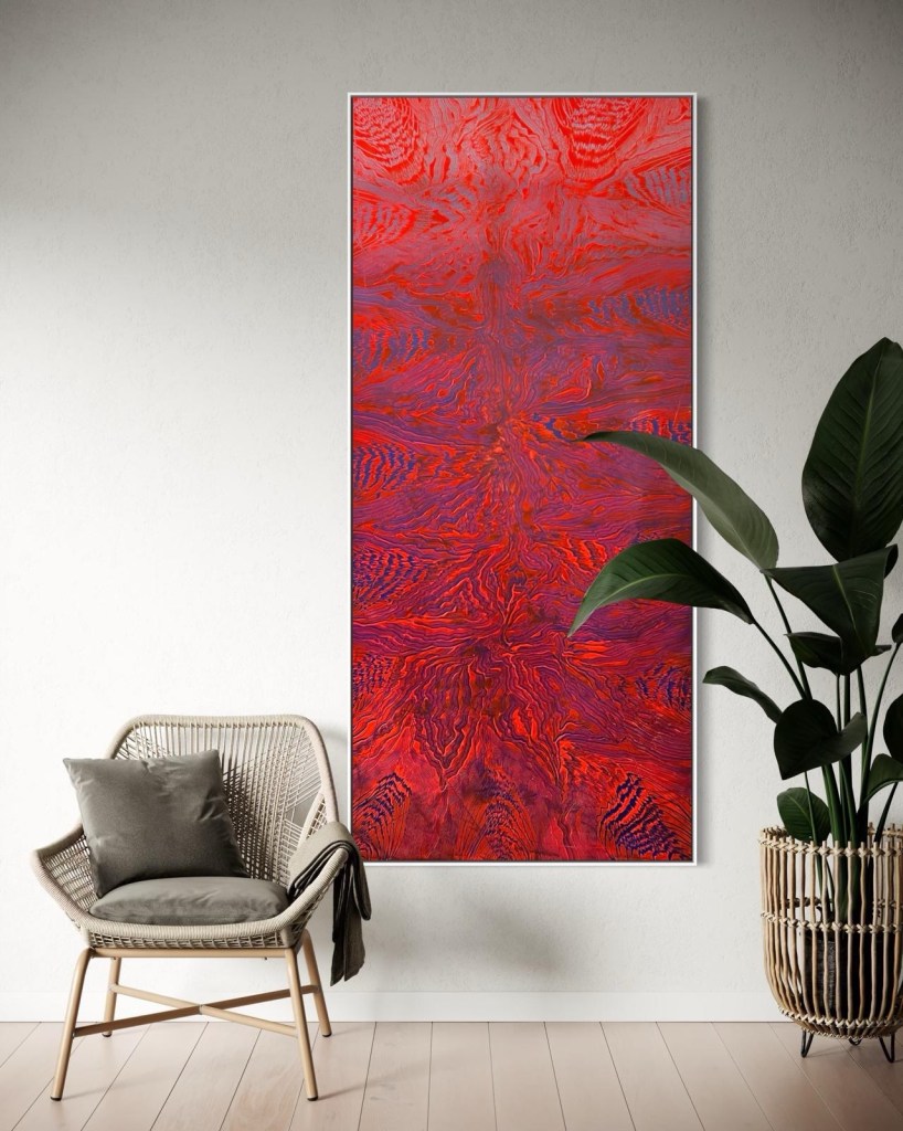 A exposição propõe uma vivência estética imersiva, em que o olhar é conduzido por camadas, relevos e contrastes cromáticos que evocam paisagens aquáticas, formações minerais e fenômenos naturais.