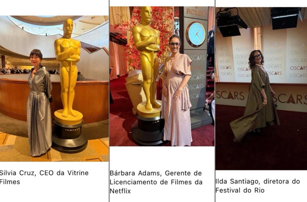 Entre os destaques está Bárbara Adams, Gerente de Licenciamento de Filmes da Netflix, que surge no tapete vermelho com um vestido de seda nude assinado por Jay Boggo. Outros nomes também apostaram nas criações do artista ao longo dos eventos da semana do Oscar. A Silvia Cruz, CEO da Vitrine Filmes, surgiu no tapete vermelho com um vestido japonês em seda criado pelo designer. Também da distribuidora, Letícia Friedrich escolheu um vestido de seda do estilista para a ocasião.