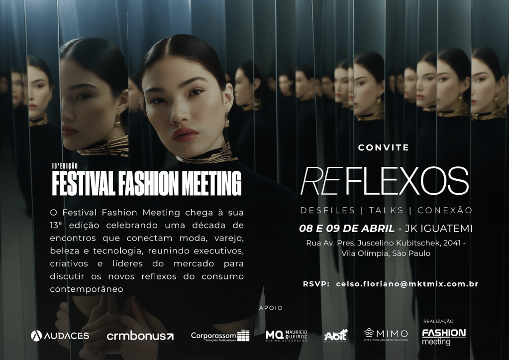 Nos dias 8 e 9 de abril, o Shopping JK Iguatemi, em São Paulo, recebe a 13ª edição do Festival Fashion Meeting, plataforma de conteúdo e relacionamento dedicada a discutir os movimentos que transformam a indústria da moda. Em 2026, o evento celebra uma década de trajetória reunindo executivos, criativos, empreendedores e especialistas que atuam diretamente na construção e evolução das marcas.