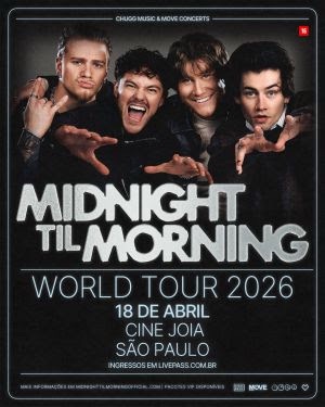 Das telas ao palco, Midnight Til Morning é uma banda transatlântica de pop rock formada em tempo real no programa Building the Band, da Netflix. Reunidos por meio de audições às cegas, os australianos Conor Smith (22) e Mason Watts (25) uniram forças com os americanos Shane Appell (22) e Zach Newbould (22), ganhando rapidamente a atenção do público em todo o mundo por sua […]