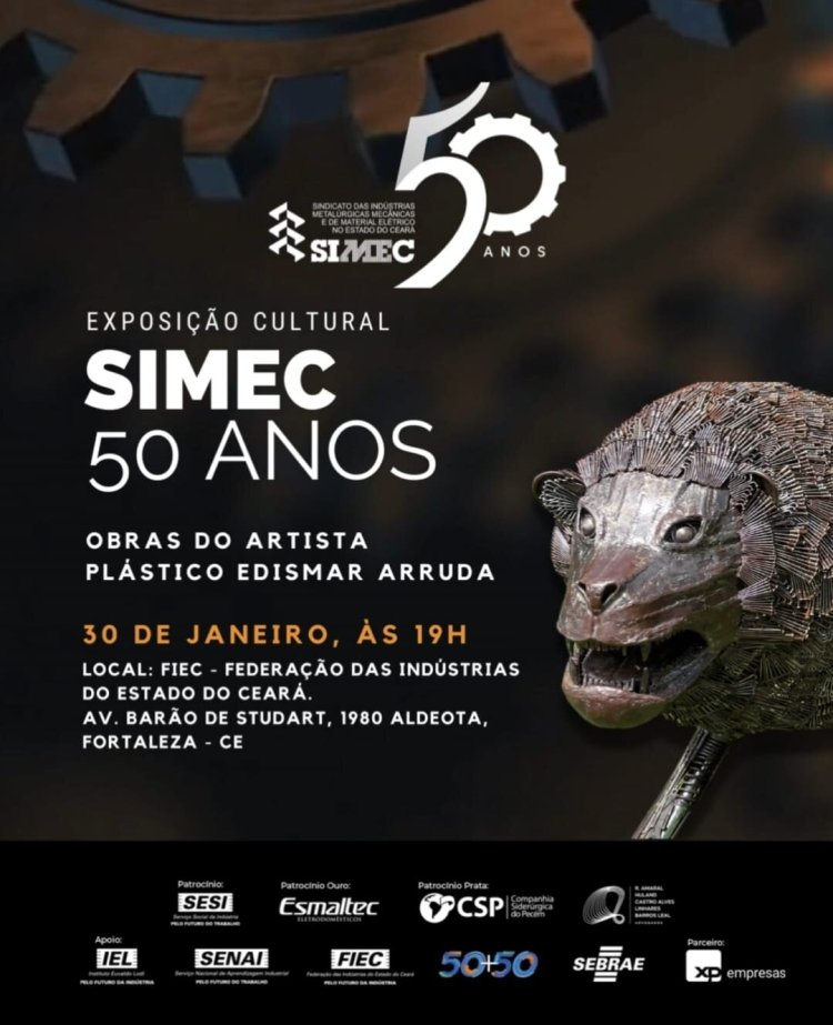Pautado na sustentabilidade, o Sindicato das Indústrias Metalúrgicas, Mecânicas e de Material Elétrico no Estado do Ceará – SIMEC/CE, lançará dia 30 de janeiro às 19h, a exposição “SIMEC 50 anos”, com peças feitas de sucata de ferro. O responsável pela criação é o escultor cearense Edismar Arruda, que possui diversas esculturas espalhadas pelo Brasil […]