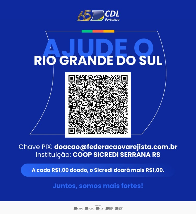 O Sistema CNDL, do qual o SPC Brasil e a CDL de Fortaleza fazem parte, realiza campanha de solidariedade para as vítimas das enchentes no Rio Grande do Sul. Como forma de também mobilizar a população, a cada R$ 1,00 doado para ação, por meio do Pix doacao@federacaovarejista.com.br (Instituição: COOP SICREDI SERRANA RS), o Sistema de Crédito […]