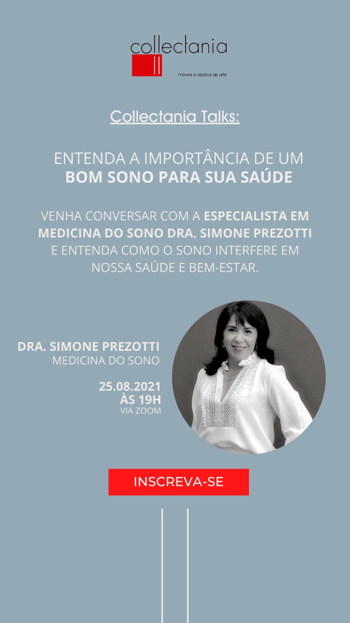 Referência no mercado do bem dormir, a Collectania, de Liliana Tuneu e Lili Tuneu Tzirulnik, promoverá o segundo encontro on-line da série Collectania Talks no dia 25 de agosto. Desta vez o papo será com a Dra Simone Prezotti, médica especialista em Medicina do Sono, sobre as curiosidades do que ocorre no nosso corpo quando […]